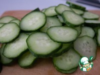 Порезать кольцами огурцы, или мельче, зависит от размера |