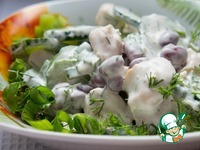 Приготовить заправку - 50/50 сметаны и майонеза, молодой выдавленный чеснок, тщательно перемешать |