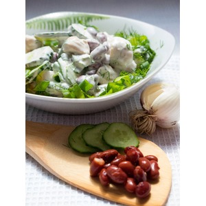 Описание: Очень вкусный салат! И свежий, и сытный, и пикантный! На мой взгляд, в нём всё очень гармонично! Приготовьте и вы, пока нас радуют хрустящие огурчики с грядки и молодой чеснок! Надеюсь, салат вам понравится! Угощайтесь!