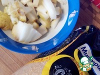 Грушу чистим от семян и режем кубиками, смешиваем с 2 ст. л. коричневого сахара. Сахар у меня демерара ТМ Мистраль. Идеальный для начинки, придает приятный карамельный вкус. |