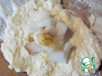 На присыпанном мукой столе делаем лепешку из теста. Можно скалкой, мне проще влажными руками. Выкладываем в центр начинку, края теста загните внутрь к середине. |