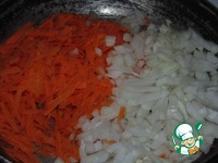 Репчатый лук мелко порезать, морковь натереть на терке. Обжарить на растительном масле. |
