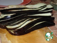 Баклажаны порезать пластинками вдоль и натереть солью. |