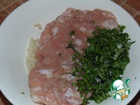 В индюшачий фарш добавить обжаренные овощи, отварной рис и зелень. |