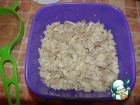 Мясо разобрала, мелко порезала и добавила тертый чеснок. Замочила желатин. |