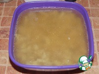 В горячий бульон добавила набухший желатин, хорошо размешала и залила им мясо. Поставила на ночь в холодильник. |
