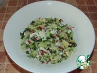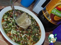 Описание: Когда первый раз прочитала про этот конкурс, подумала, что не буду участвовать. Окрошку я не очень люблю, хотя часто готовлю для мужа, и рецепт у меня банальный... Но разговорившись со свекровью узнала интересный семейный рецепт. Оказалось, что у них в деревне окрошку всегда готовили с холодцом, который летом хранился в погребе. Конечно же решила опробовать семейный рецепт на новый лад.