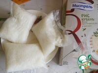 Рис отварить до готовности как указано на упаковке, затем пакетики с рисом вынуть из воды и дать ей стечь. |