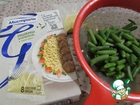В сотейнике вскипятить воду. Запустить стручковую фасоль. Довести до кипения. Варить, примерно 5 минут. Фасоль откинуть на дуршлаг, чтобы стекла лишняя жидкость. |