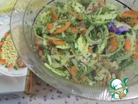В миске соединить все овощи и куриное мясо. Добавить подготовленное песто. Посолить (не увлекайтесь!). И все аккуратно перемешать. |