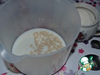 В теплом молоке растворить сахар и дрожжи. Поставить в теплое место для брожения. Дрожжи поднимутся небольшой "шапочкой". |