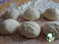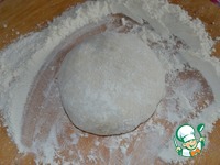 Выложить его на доску с мукой и слегка обмять. Накрыть полотенцем, чтобы еще слегка поднялось. |