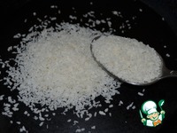 Приготовим начинку: кокосовую стружку надо нагреть на сухой сковороде. |