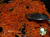 Обжарить на сливочном масле тертую морковь, всыпать сахар. Дать покрыться ей карамельным (слегка жженым) сахаром. |