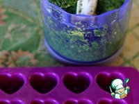 Описание: У каждой хозяйки свои секреты! У меня летом всегда, в морозилке, заготовлено несколько форм с зеленым льдом. Эти маленькие ледышки являются отличным дополнением к окрошке, когда хочется похолоднее. А ещё секрет в том что мои мужчины - отец, муж и старший сын любят поострее и такая заморозка помогает мне приготовить одну окрошку на всю семью, а при подаче подперчить сильной половине. Кстати, зелёный лед отличная заготовка на зиму, прекрасно подойдет и к борщу, и к картошечке.