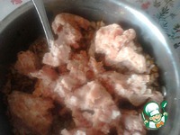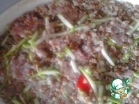 К отварной гречке добавить фарш, посолить, поперчить по вкусу. Перемешать. |