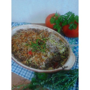 Описание: Простая, сытная и вкусная запеканка с овощами и мясом. Приготовление запеканки не займёт у вас много времени. В запеканке использованы такие овощи со своего участка, как кабачки, помидоры и зелень для подачи.