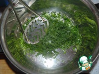 Укроп и зеленый лук мелко порезать, перетереть с солью. Так окрошка получается ароматнее. |
