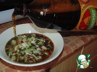 Окрошку перемешать и заправить квасом ТМ Очаковский. |