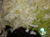 Шинкуем капусту. Соломкой нарезаем перчик, базилик меленько. |