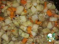 Разогреваем большую, глубокую сковороду (Вок). Добавляем немного масла для обжарки. Кладем картошку и морковку. Минут через 10 добавляем баклажаны. |