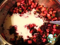 Затем добавить свеклу, натертую на мелкой терке и хрен. Перемешать. |