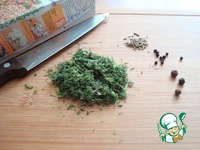 Рубим зелень, готовим специи. Я взяла перец душистый и чёрный горошком и щепотку зиры. |