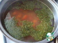 Выкладываем специи и зелень, наливаем 1 ст л оливкового масла. Варим ещё 5 минут. |