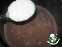 Добавляем сахар. Можно и больше для сладкоежек, а можно и меньше. Всё ещё зависит от шоколада, потому что бывает и в горьком шоколаде достаточно сладости. |