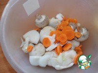 Выложить морковь и лук к грибам. |