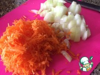 Лук порезать кубиком, морковь натереть на крупной тёрке. |