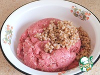 Свинину, говядину и мяса кур (бедренную часть), кусочек белого хлеба прокрутить через мелкую решетку или пробить в блендере. Добавить отварную перловую крупу (2/3 стакана) |