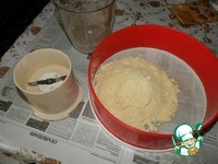 Пока масса остывает надо перемолоть на кофемолке пшено и просеять через мелкое сито вместе с мукой и разрыхлителем. |