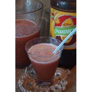 Добавляем квас и воду, хорошо перемешиваем. Можно при желании добавить кубики льда и подавать. |