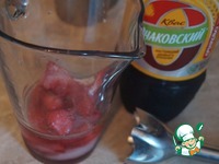 В замороженную клубнику добавляем полстакана воды, сахар (мёд) и пюрируем её блендером. |