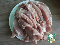 Мясо нарезать на куски толщиной около 2 см. У меня получилось 11 кусков. |