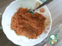 В глубокой тарелке смешать все сыпучие ингредиенты, чеснок пропустить через пресс, хорошо перемешать, консистенция получится чуть влажная и рыхлая |