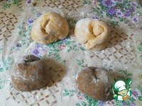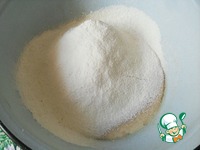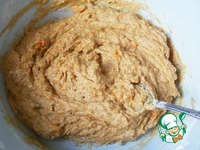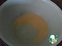 Тесто получается жидковатым. Разделить его на 2 равные части. |