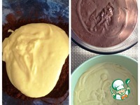 Я решила сделать половину теста шоколадным, поэтому разделила его на две части (на глаз). В одну вмешала какао. |