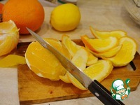 "Разделываем" наш апельсин - острым ножом срезаем всю кожуру, а потом аккуратно вырезаем дольки - если нож острый - то весь процесс займет минуту |
