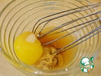 Продолжая взбивать потихоньку вливаем растительное масло. Наша заготовка посветлеет, станет приятного золотистого цвета |