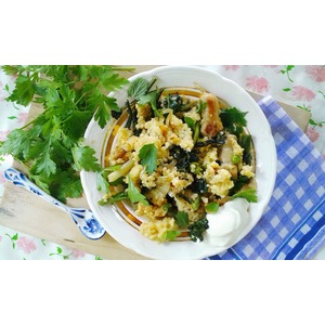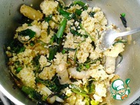 Накрываем крышкой и через 2 минуты снимаем с огня. А пока каша доходит - готовим соус - сметану, лимонный сок и чеснок перемешиваем, добавляем пару ст. л. растительного масла |