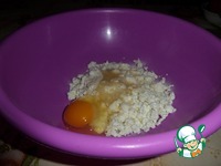 Пока варится пшено, займемся приготовлением теста. В чашку выкладываем творог, соль, сахар, яйцо. Добавляем растительное масло. Перемешиваем. |