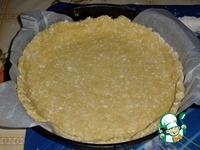 Достаем из морозильной камеры наше тесто. Раскатываем в виде лепешки. Выкладываем в форму, формируя бортики. |