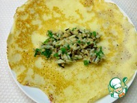 Свернуть произвольно. Накрутить блинов, пока не кончится начинка. У меня получилось 16 штук. |
