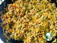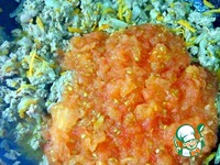 Фарш (у меня свинина и курица) обжарить на растительном масле до полуготовности, добавить лук и морковь, немного обжарить. |