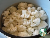 Цветную капусту разобрать на соцветия, отварить в кипящей подсоленной воде 10 минут до готовности, остудить, пюрировать. |