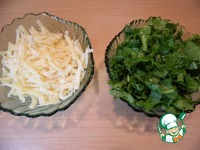 Сыр натереть на крупной терке, мангольд (листовую свеклу) измельчить. |