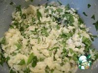 Смешать рис, капустное пюре, сыр, шпинат, добавить яйцо, посолить, поперчить, хорошо вымесить. |