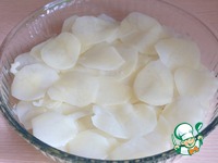 На дно формы для запекания выложить картофель, посолить, поперчить по вкусу. |
